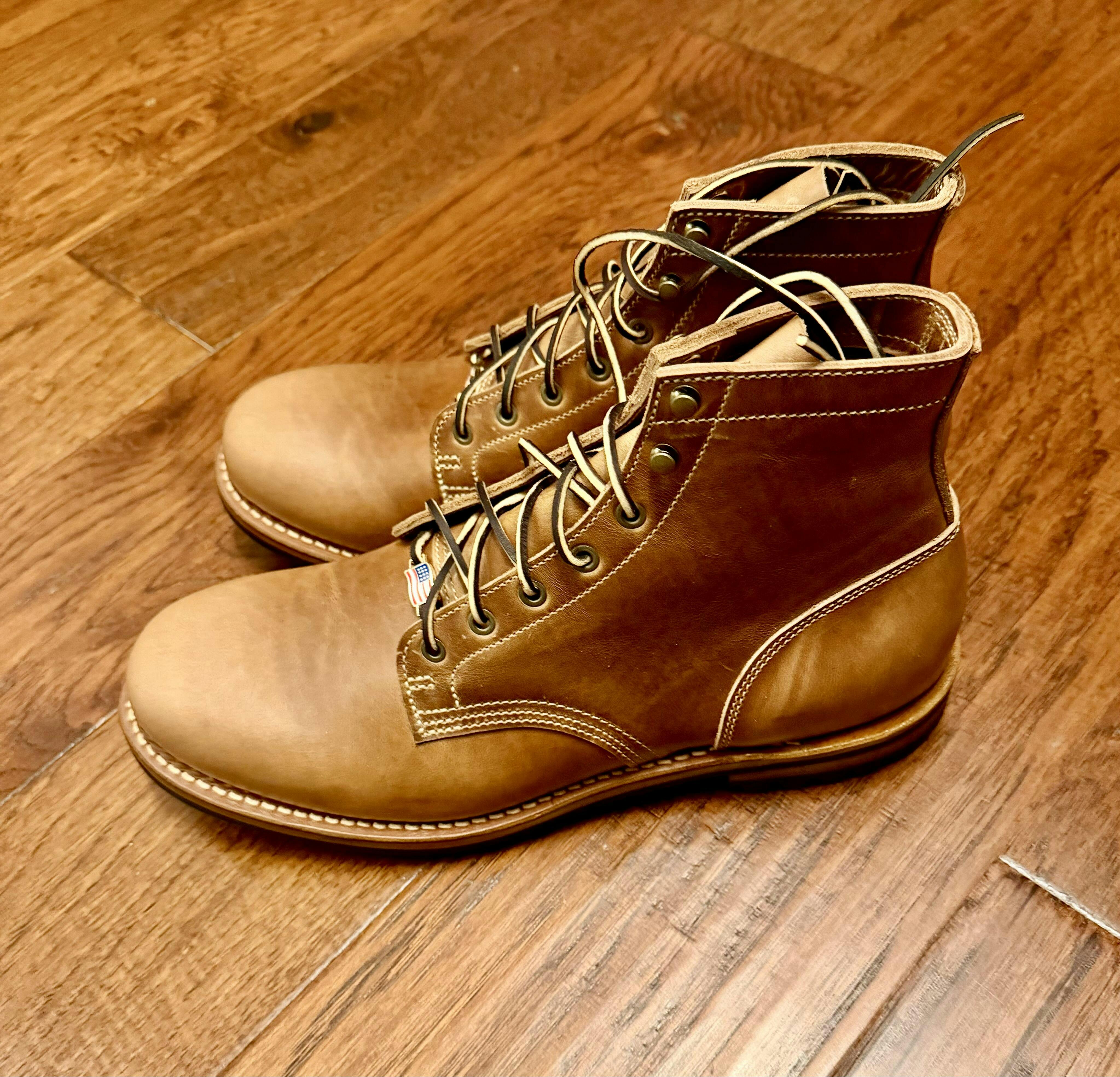 This new Sesame Double Shot is a caramel tan that looks exceptional with denim, and anything else you pair it with. While a more refined, smooth leather, we've made no concessions in weight, and like all of our releases going forward, this leather comes in at over 6 oz resulting in a gorgeous, hard-wearing pair of boots.