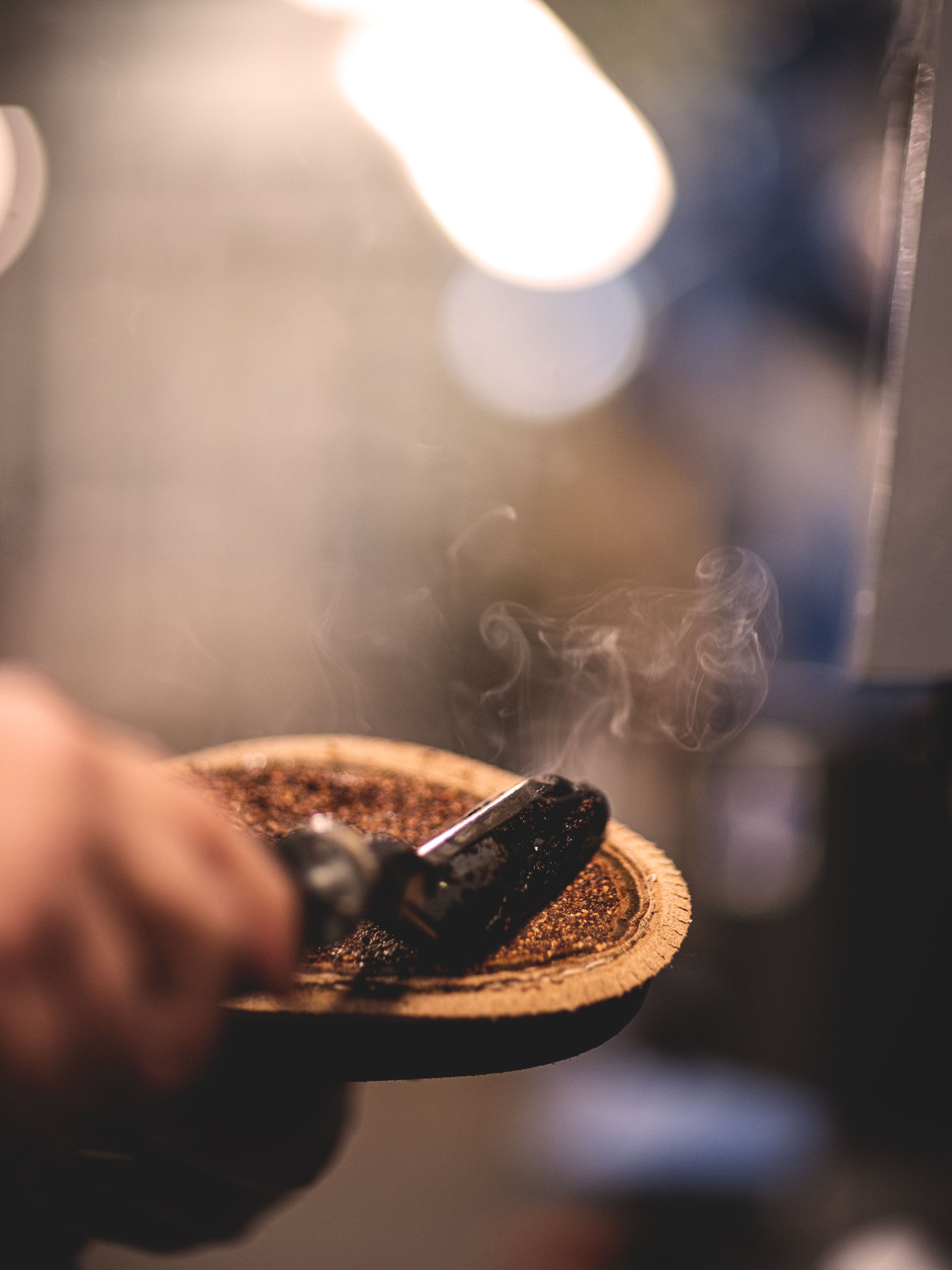 Following the attachment of the welt, a space is created between the insole and the outer sole. This void is then filled with cork.