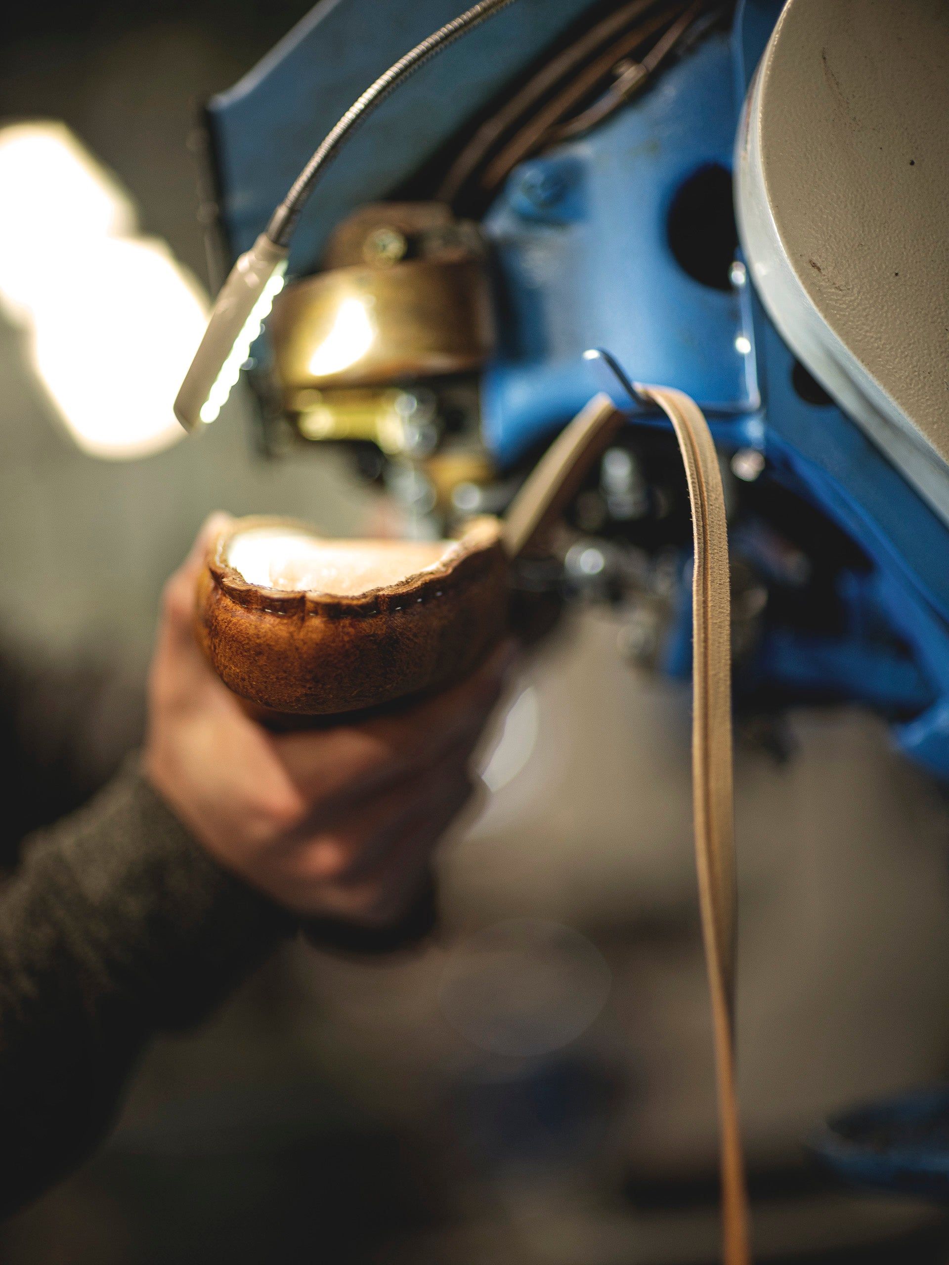 The first step in the Goodyear welting process involves preparing the insole, which serves as the foundation of the boot. A rib is attached to the perimeter of the insole, creating a ledge for stitching. This is a crucial component as it provides a surface to which the boot upper and the welt will be attached. We create these insoles in-house so that we can guarantee the quality is top notch.