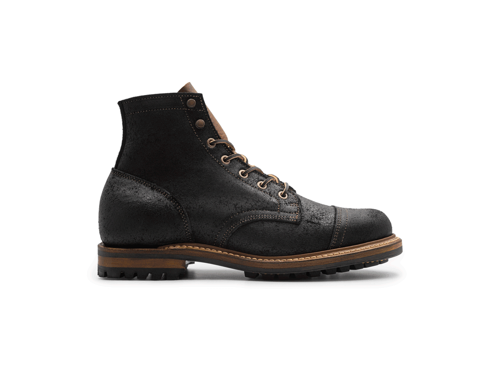Black Oiled Rough Out is a new chromed-tanned leather from Seidel, featuring a hefty use of oil in the tanning process. This leather is perfect for footwear: tough, supple, beautiful, and very weather-resistant. Not to be confused with the similarly named Black Oil-Tanned Rough Out, a drier, stiffer leather we've used in the past. If you can't get enough about Black Oiled Rough Out, read our Leather Notes about it here for more details.