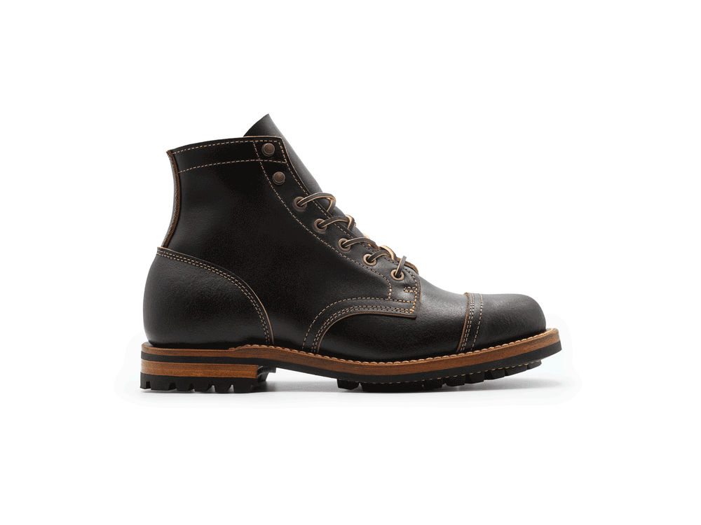 The black version of our most popular leather, this waxed flesh or "rough out" leather has a waxed finish, applied during the tanning process, making it extremely durable to most elements with water-resistant characteristics. Meant to age over time with a patina that portrays the "rough out" side of the hide, the wax will fade over time with heavy, constant wear.