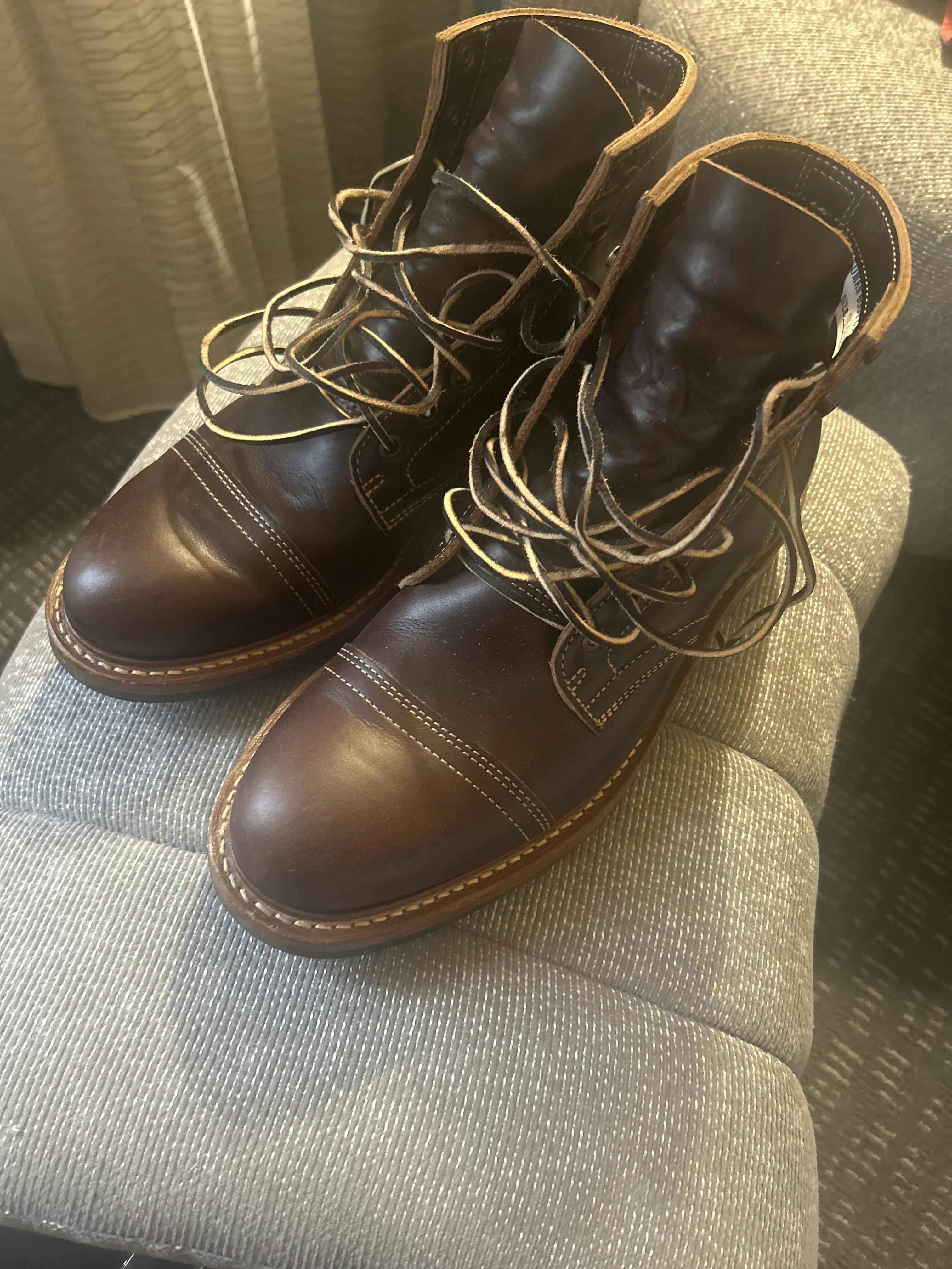 This Brown Double Shot, formerly Bay Double Shot, is a classic dark brown that revels in the play of light and the subtle variation revealed in the leather. While a more refined, smooth leather, we've made no concessions in weight, and like all of our releases going forward, this leather comes in at over 6 oz resulting in a gorgeous, hard-wearing pair of boots.