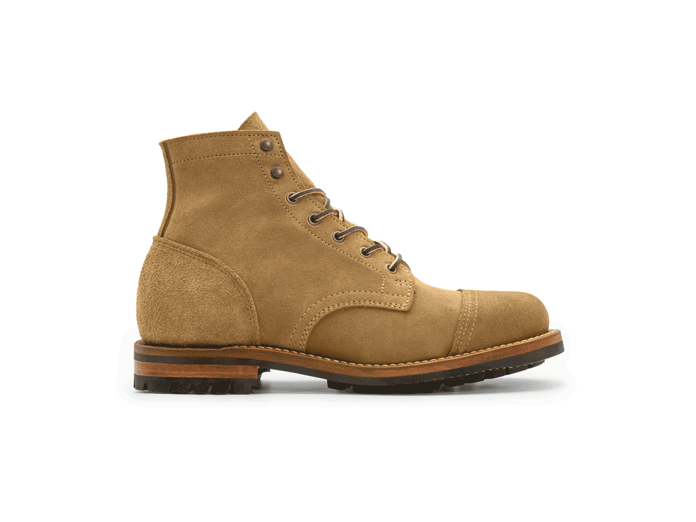 This is military-spec leather, notorious for its rugged durability in all terrains. You might wonder what does military-spec even mean, and in this case it primarily means this leather is tanned to a government-required level of waterproofness. Tested in some of the more extreme environments across the globe, this leather is easy to wear, and easier to take care of. In terms of color, this is a light tan color, that will look on the warmer side of the color spectrum in full sun.