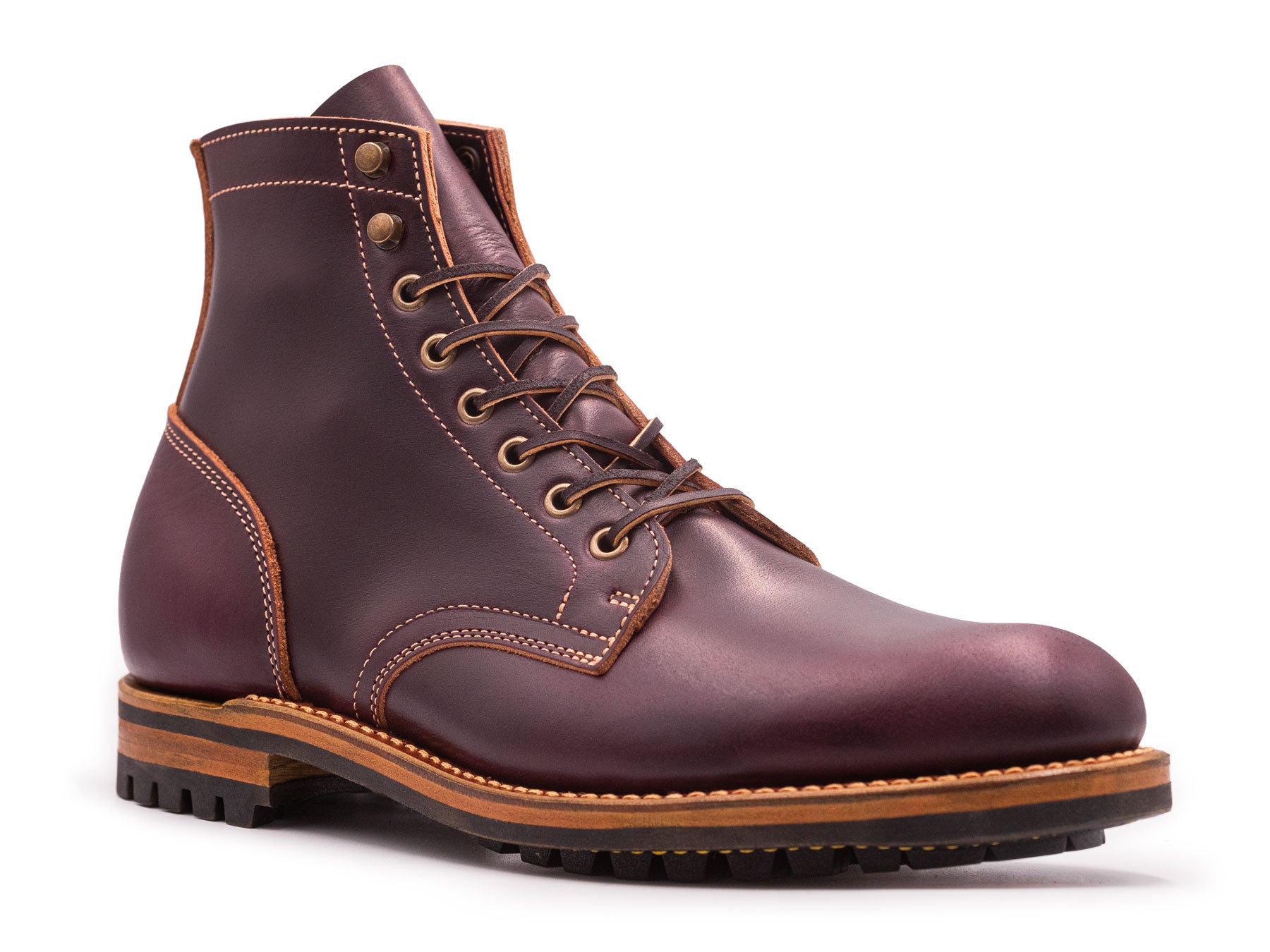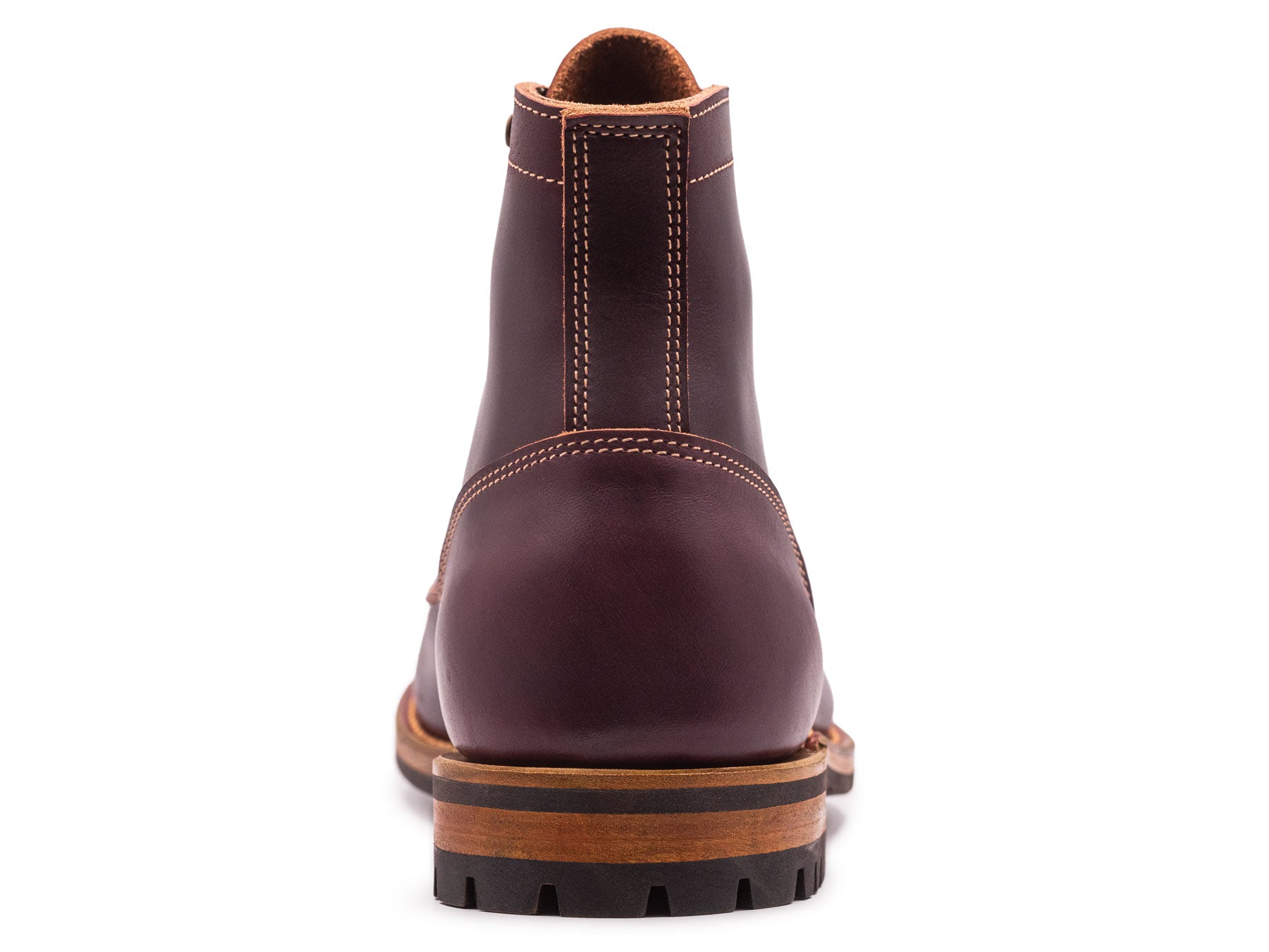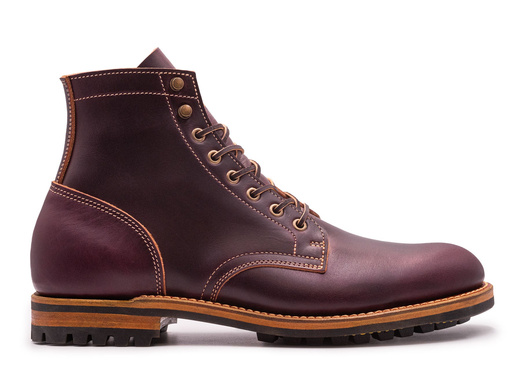 This Oxblood Double Shot is a deep scarlet that revels in the play of light, showcasing burgundy tones and hints of aubergine. While a more refined, smooth leather, we've made no concessions in weight, and like all of our releases going forward, this leather comes in at over 6 oz resulting in a gorgeous, hard-wearing pair of boots.