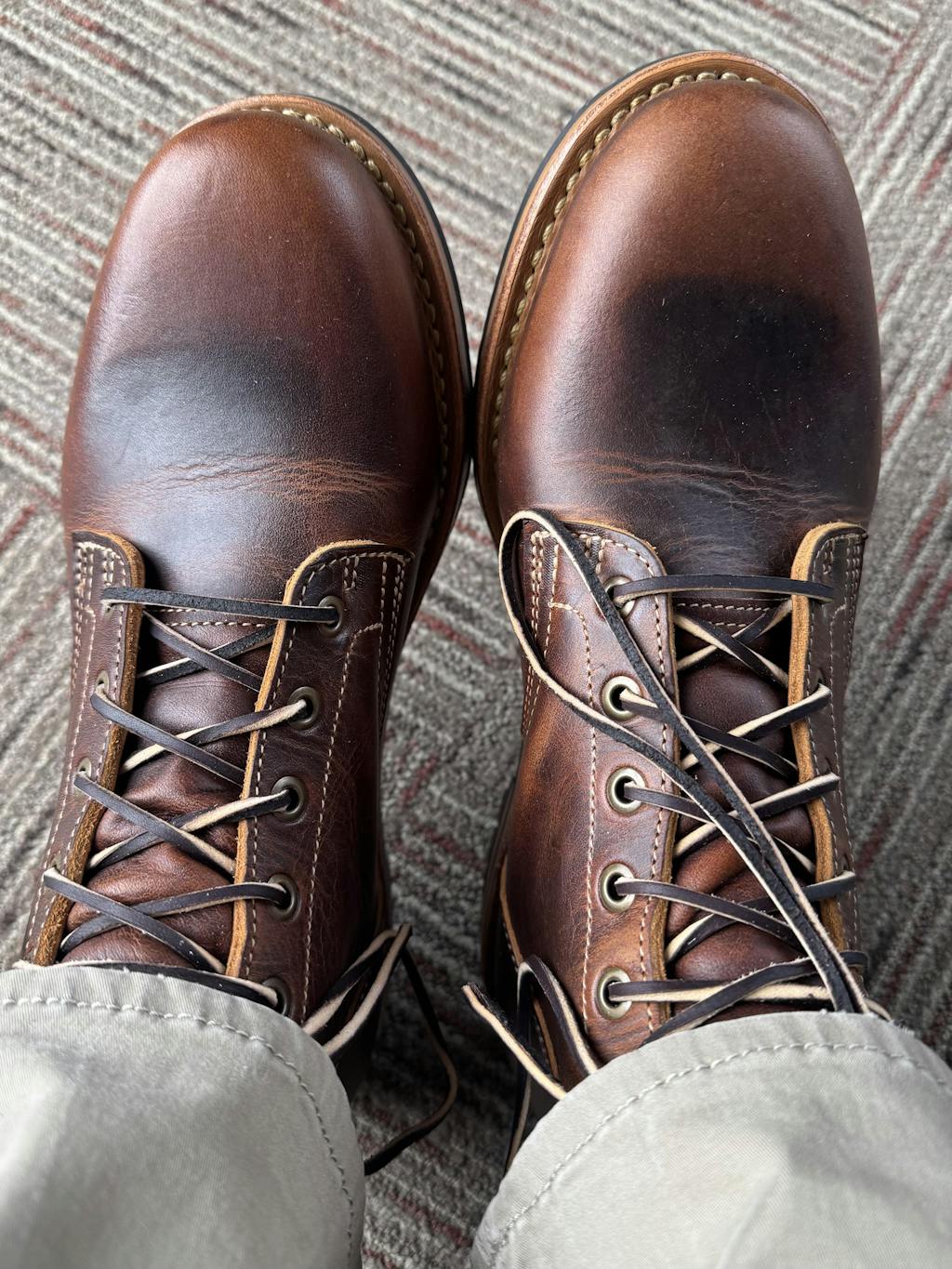 Snakebite is a full grain, pull-up rich natural leather from Seidel Tanning that has a robust vegetable retan. To say "pull-up rich" is an understatement, as this leather is loaded up with oils and waxes, and results in boots that look better with age.